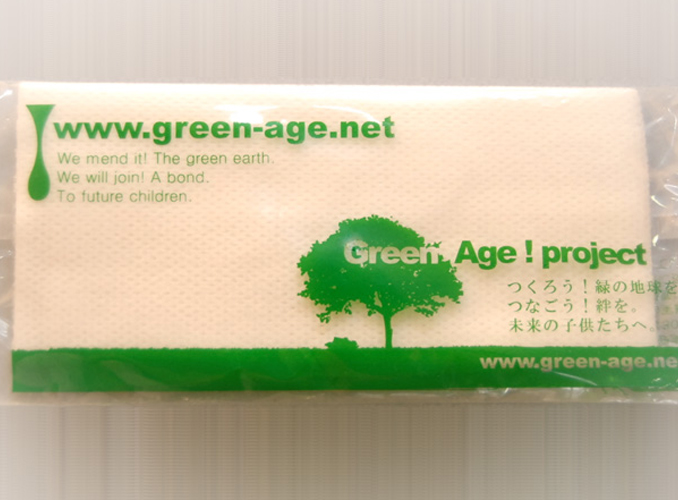 グリーンエイジプロジェクト とは、おしぼりレンタル事業を主業務としている(株)マキ商会代表酒巻剛氏と、 同社の協力会社であり紙おしぼりの製造・販売を行っている(株)サンテック代表吉野志門氏が、 中心となって立ち上げたプロジェクトだ。